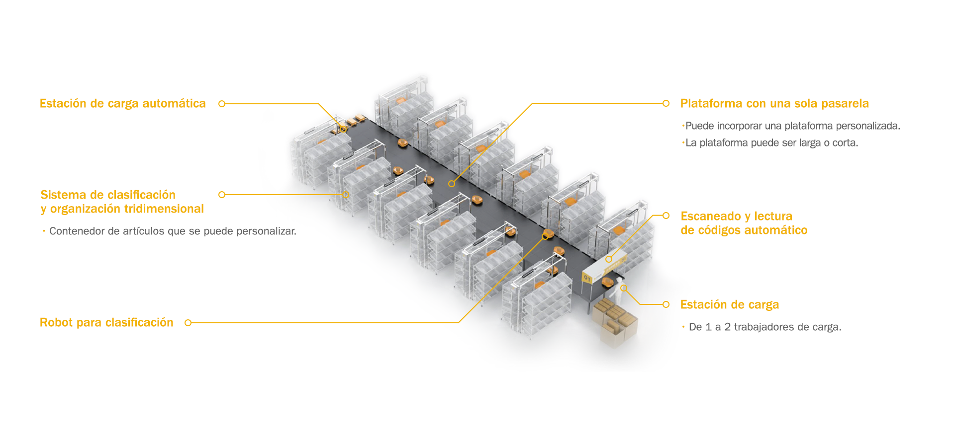 Escenarios de aplicación: Confección, comercio minorista, entrega urgente, alimentos frescos (almacenamiento en frío), joyería, libros y otras industrias que involucran centros de clasificación o recolección en almacenes.