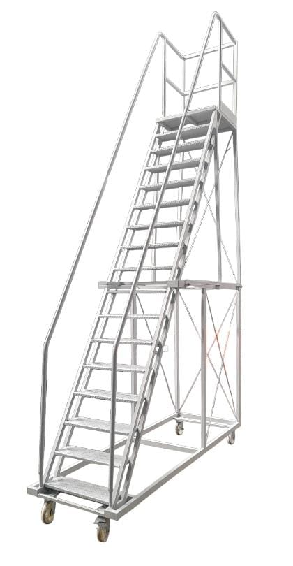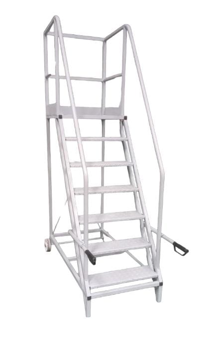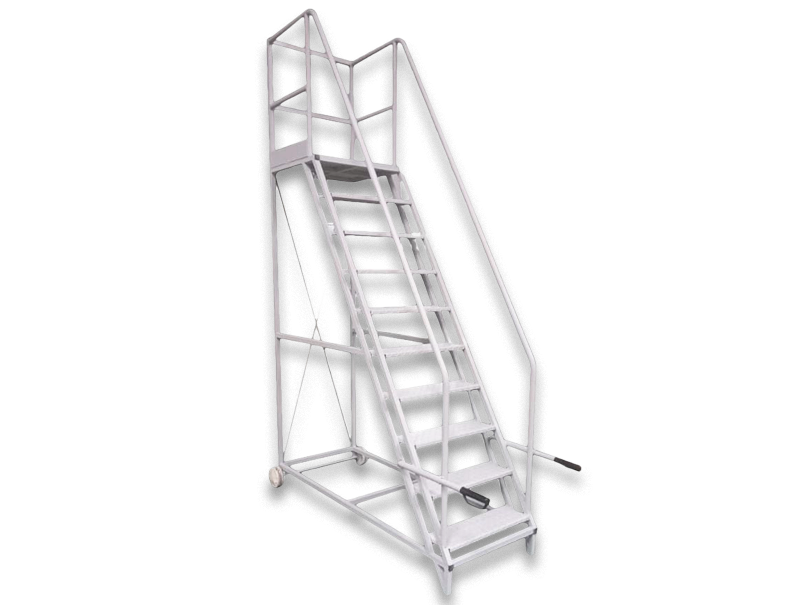 Escaleras rodantes tipo "burro" de la marca Michelotti, de fabricación nacional, que cuentan con plataforma para diferentes alturas y sólida baranda perimetral. Son seguras, robustas y fáciles de movilizar.