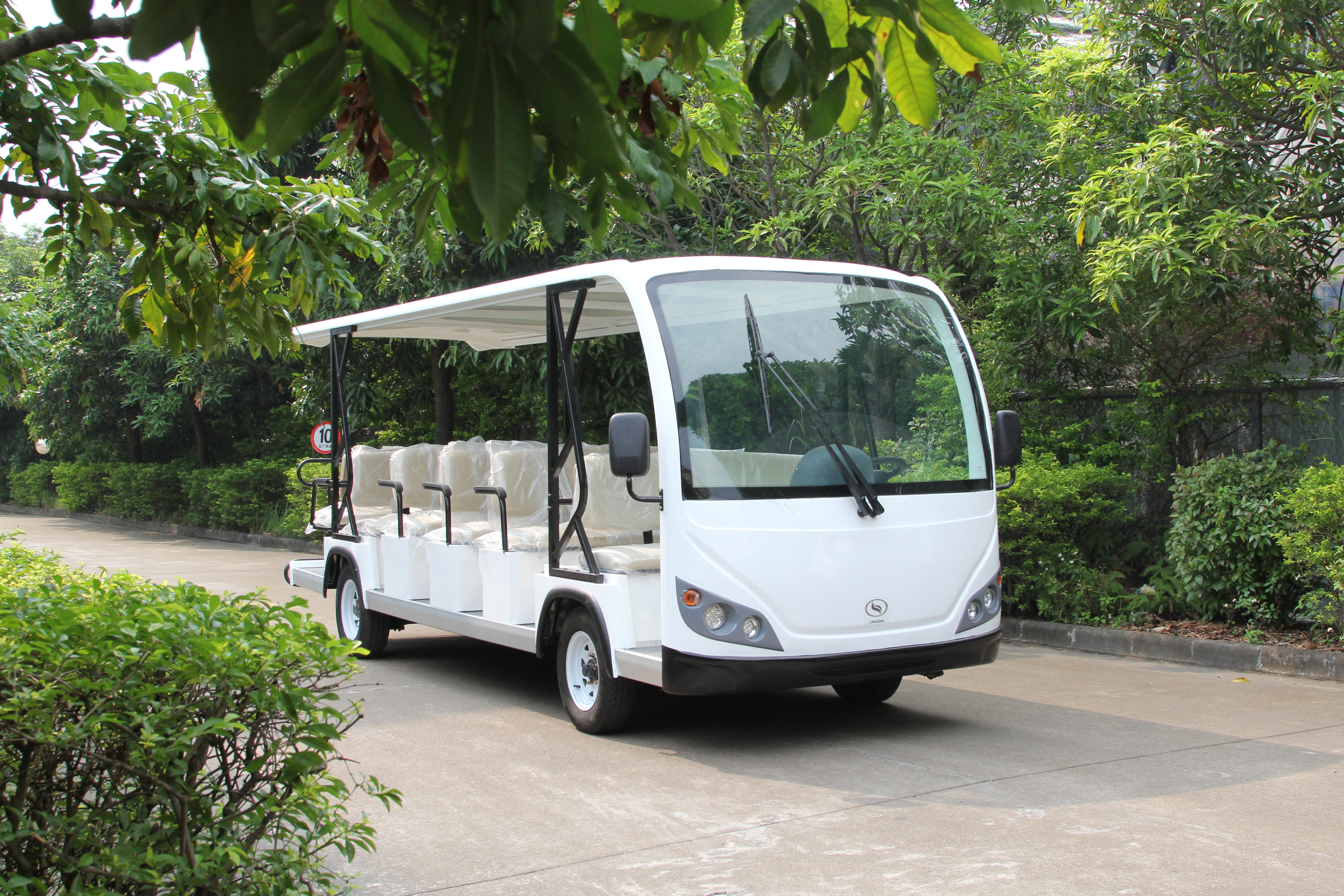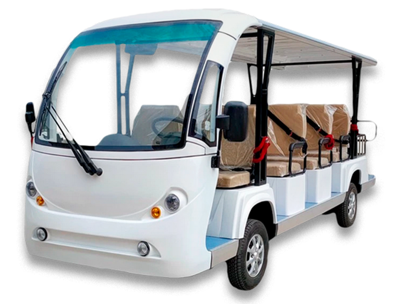 Carro LQY230 para 23 personas de la marca Langqing. Versátil, cómodo y eficiente, ideal para desplazamientos dentro de ámbitos privados. Opcional abierto o cerrado.