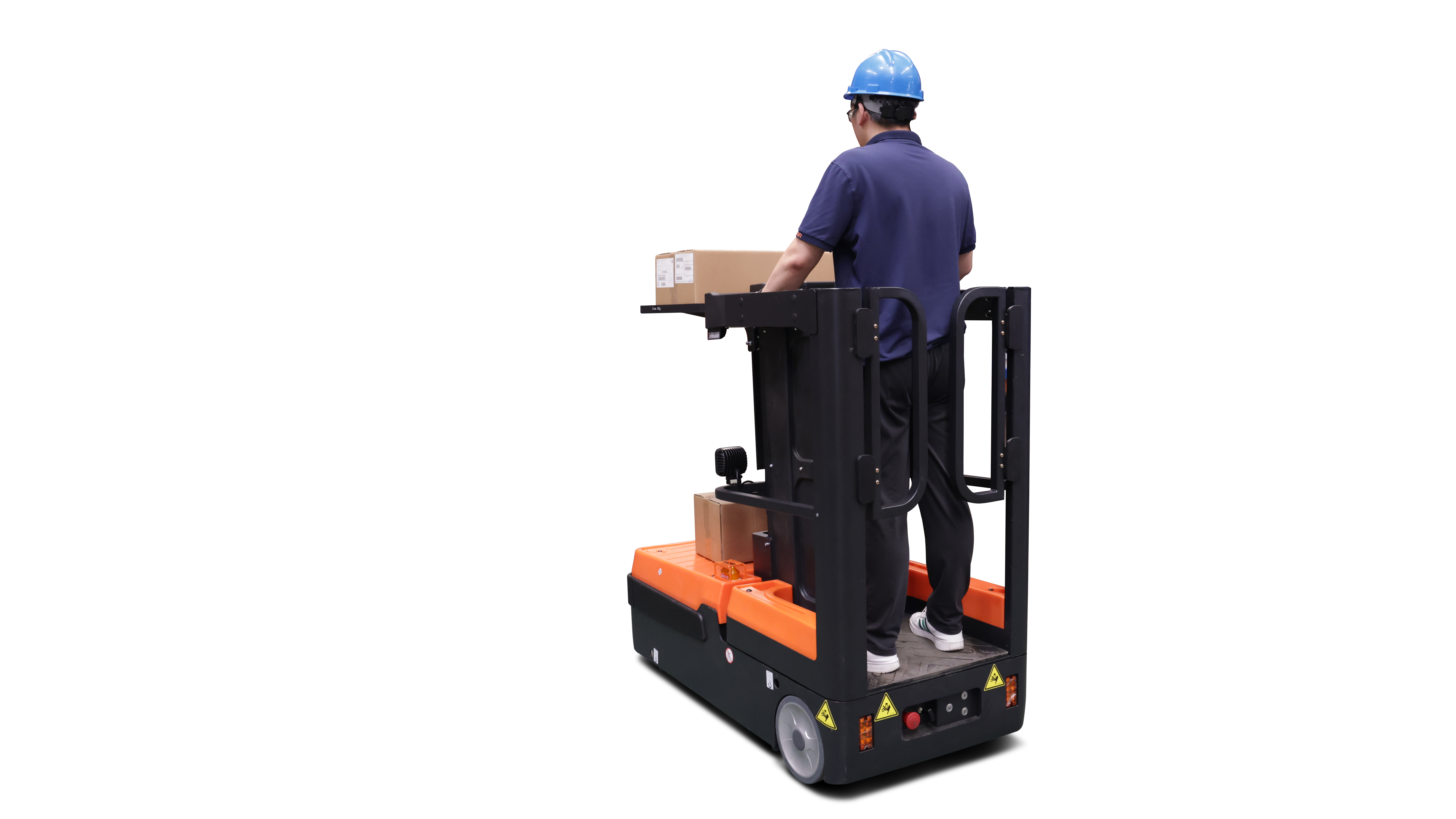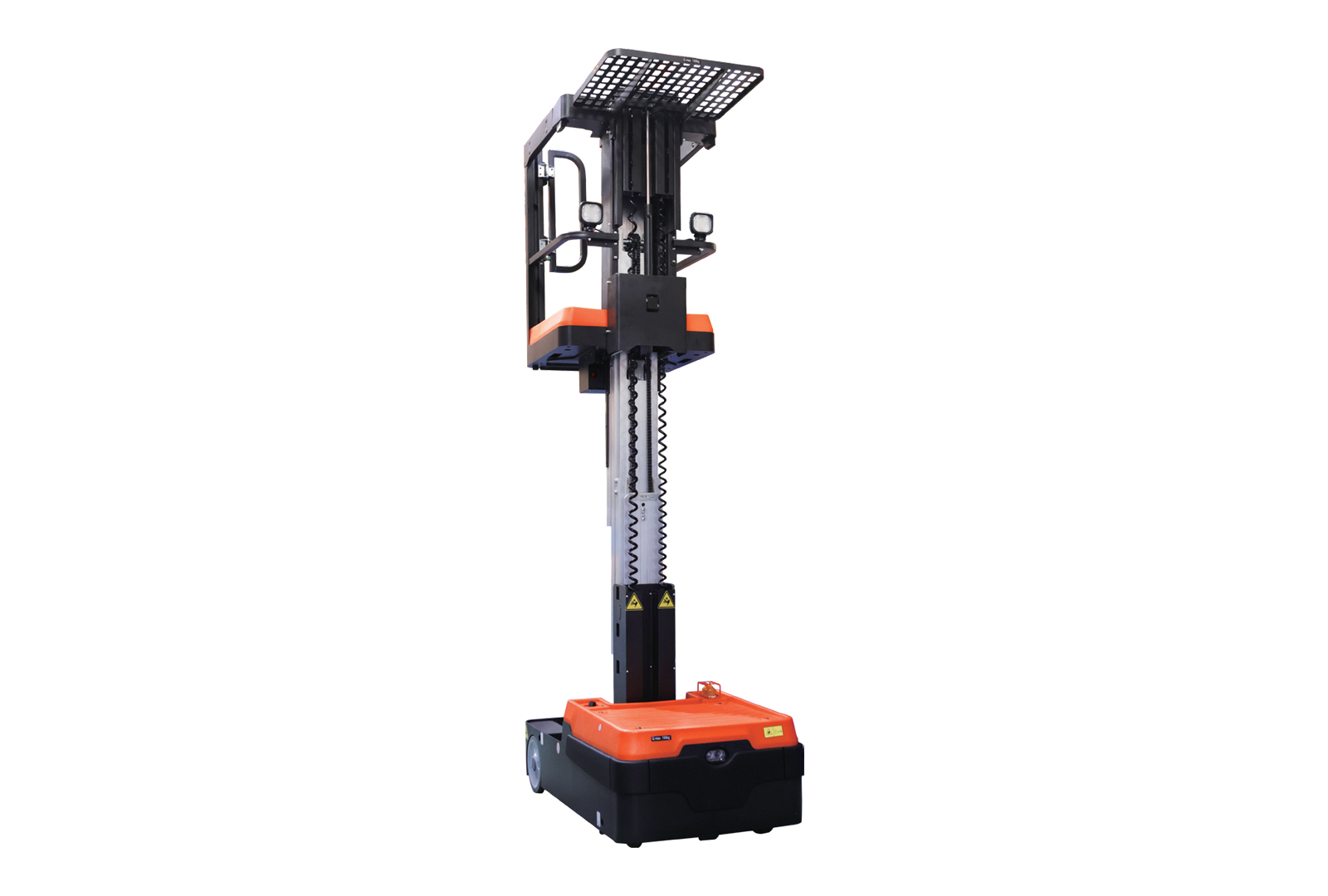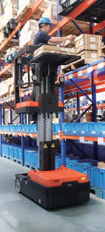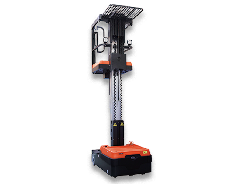 Order picker eléctrica, de la marca Noblelift. Tiene una única válvula hidráulica que asegura estabilidad durante el ascenso y descenso. También, su pedal del pie asegura que el operador conserve una posición segura para operarlo.