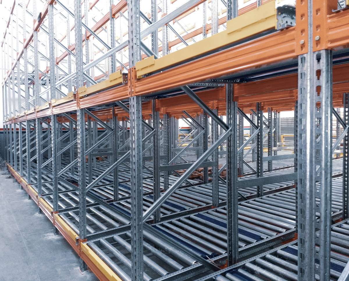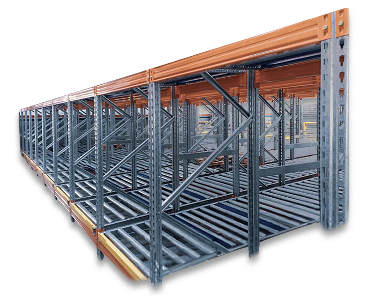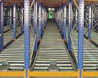 Sistemas de almacenamiento paletizado en base a caminos de rodillos de la marca Informrack. Comúnmente usados donde se almacenan cargas iguales y permite una excelente rotación del producto por gravedad que desplaza el pallet a extremos opuestos.