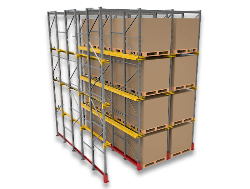 - Su sistema de Carga Compacta permite la carga y descarga de pallets ubicados en profundidad y en altura mediante “calles” que facilitan la entrada y salida del autoelevador.