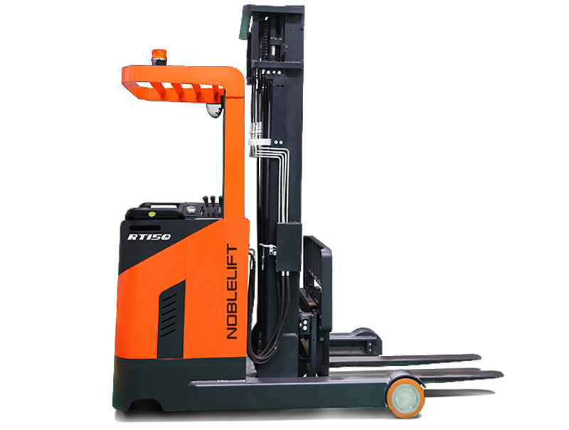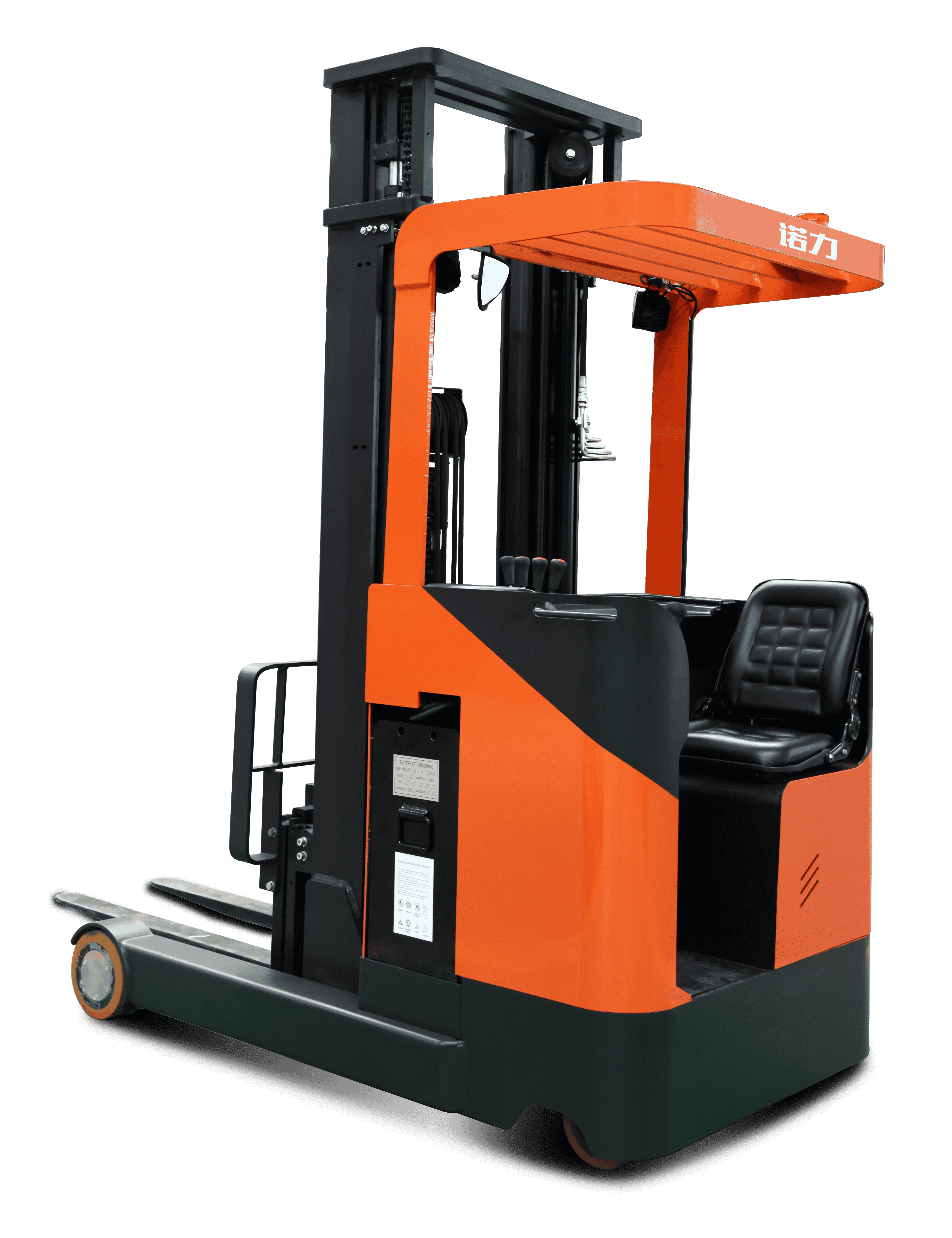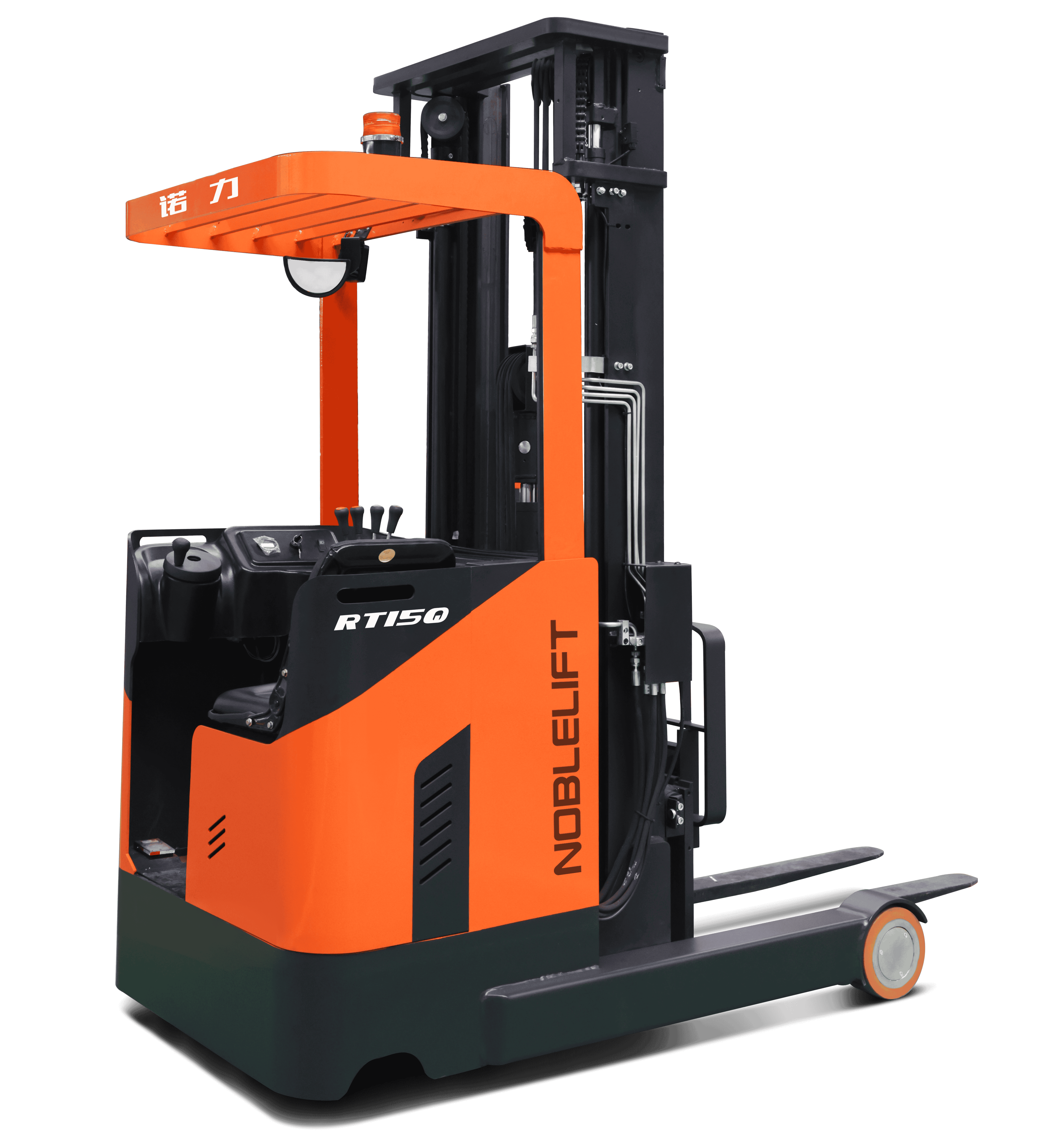 Apilador REACH de la marca Noblelift, de elevación electrohidráulica, traslación eléctrica y contrapesado. Ideal para pallet cerrados, y para mover cargas pesadas a grandes alturas. Con operario sentado, y cabina de protección. Tiene un andar suave y elevación controlada. Las torres triples llegan hasta 6.000mm