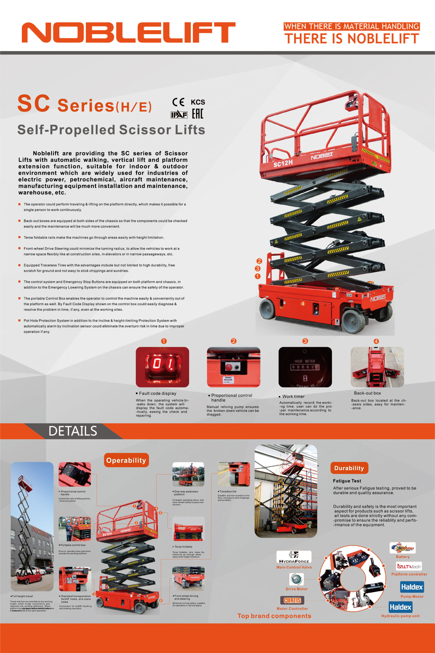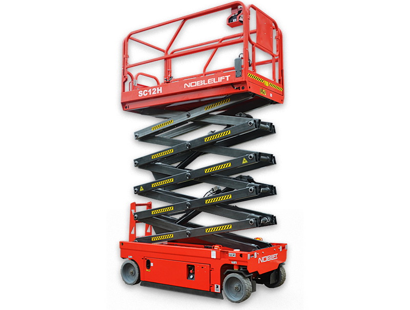 Las plataformas móviles SC de la marca Noblelift son equipos autoportantes que sirven para trabajar en altura. Tienen un eje de giro que mejora la productividad en terrenos ásperos. Pueden venir de 6 a 16 metros, compactos para pasillos angostos, o estándar.