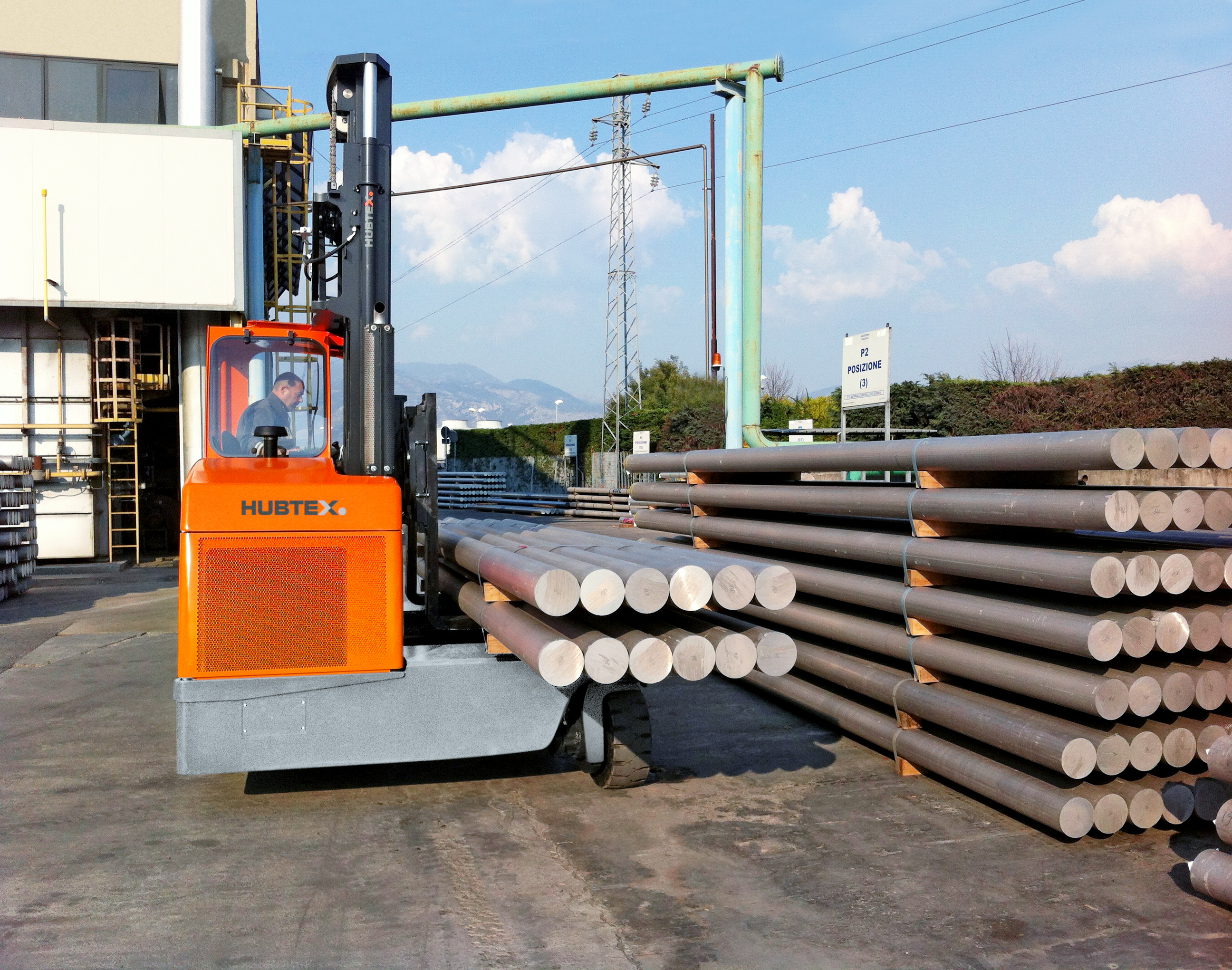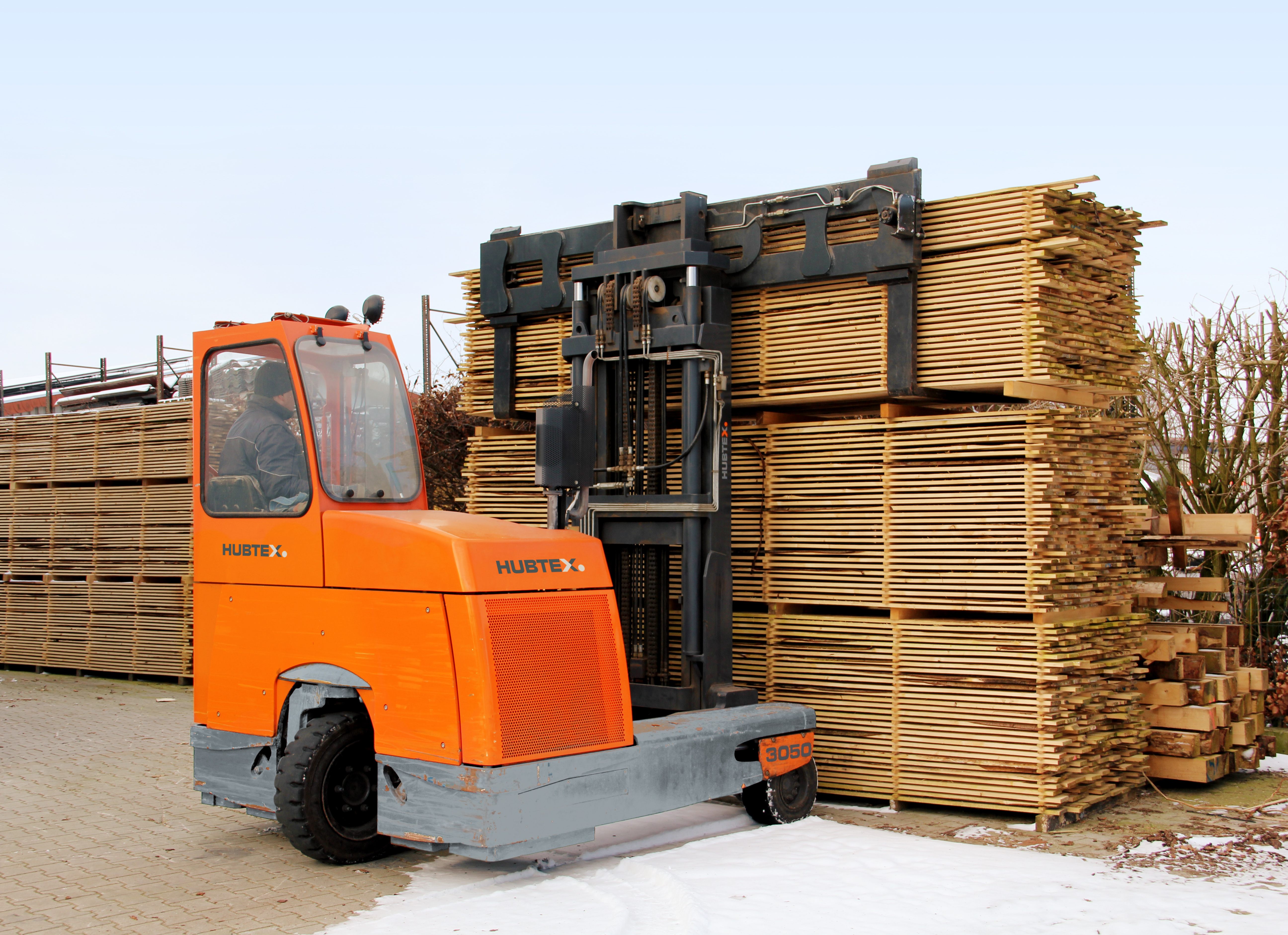 Con las series 3051 y 3052, HUBTEX ha desarrollado dos especialistas para el uso en el exterior, especialmente para aplicaciones de carga pesada en el manejo de cargas largas. Las carretillas de cuatro vías con chasis de tres ruedas también pueden adaptarse a las malas condiciones del terreno en el uso al aire libre gracias a sus grandes neumáticos y a la tracción hidrostática en todas las ruedas. La serie 3051 ofrece dos tipos en el rango de capacidad de carga de 7 y 8 toneladas. Para aplicaciones especialmente pesadas de hasta 14 toneladas, HUBTEX ofrece el DQ 140 de la serie 3052, que es actualmente el vehículo más grande de la serie DQ. El vehículo puede adaptarse individualmente a las necesidades de la aplicación mediante diferentes anchuras útiles y alturas de elevación.
