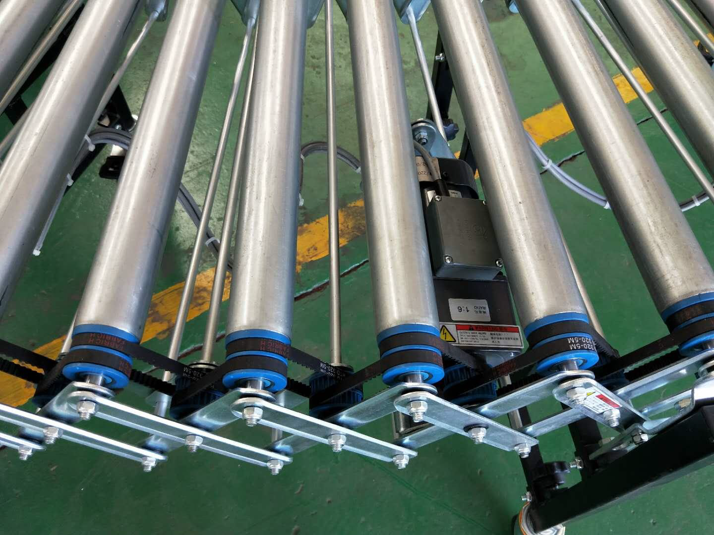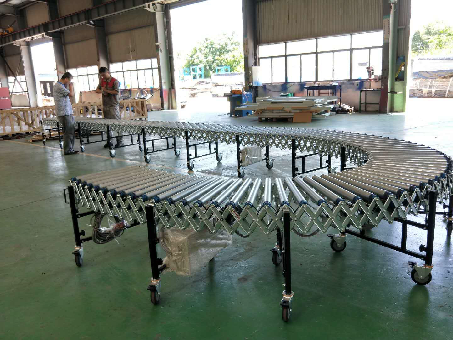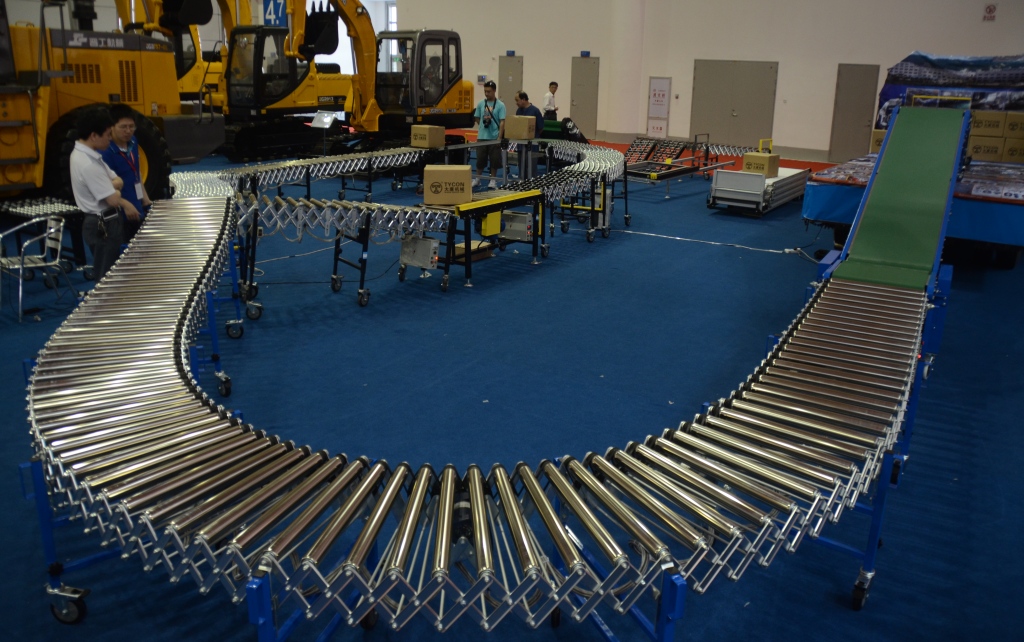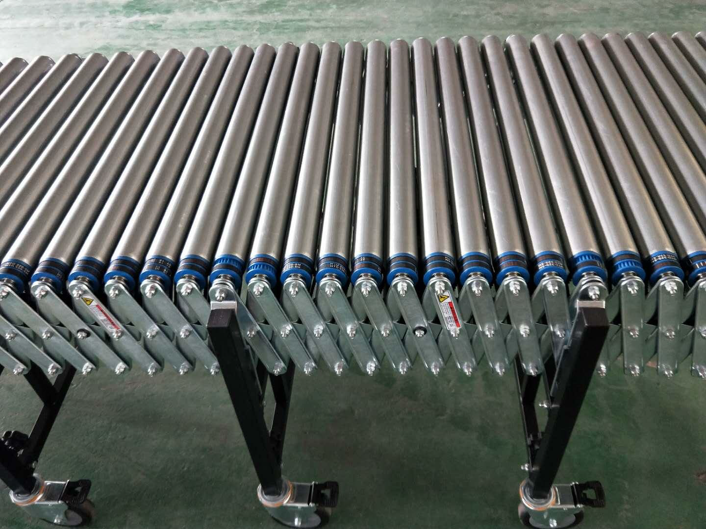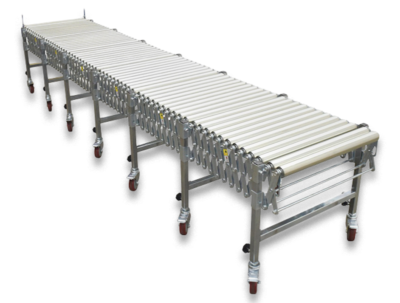 Tramos de Rodillos Extensibles, de la marca Apollo. Son importados y pueden ser mecanizados, o por gravedad. Los rodillos se interconectan mediante correas plásticas. Pueden colocarse de forma lineal, o al ser flexibles, permiten solucionar curvas, o hasta círculos dentro de un proceso productivo.